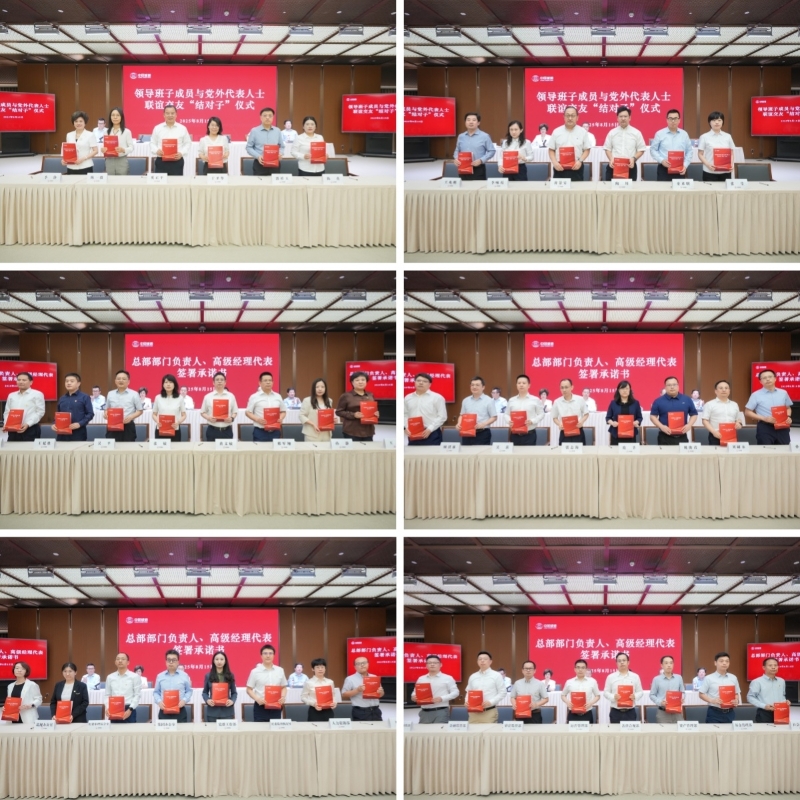 ??會(huì)上,舉行了集團(tuán)領(lǐng)導(dǎo)班子成員與黨外代表人士聯(lián)誼交友“結(jié)對子”儀式;總部部門負(fù)責(zé)人及高級(jí)經(jīng)理代表簽署了深化三項(xiàng)制度改革承諾書。