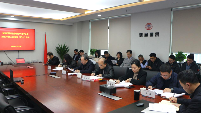 ??12月31日,誠(chéng)通國(guó)貿(mào)黨委召開(kāi)理論學(xué)習(xí)中心組(擴(kuò)大)學(xué)習(xí),學(xué)習(xí)貫徹習(xí)近平總書(shū)記對(duì)中央企業(yè)工作作出重要指示精神和黨的二十屆四中全會(huì)、中央政治局會(huì)議、中央經(jīng)濟(jì)工作會(huì)議、中央企業(yè)負(fù)責(zé)人會(huì)議精神,圍繞“十五五”規(guī)劃編制和2026年重點(diǎn)工作安排進(jìn)行務(wù)虛研討。公司黨委書(shū)記、董事長(zhǎng)何建祥主持會(huì)議,公司領(lǐng)導(dǎo)班子成員參加會(huì)議。集團(tuán)列席旁聽(tīng)組視頻列席指導(dǎo)。