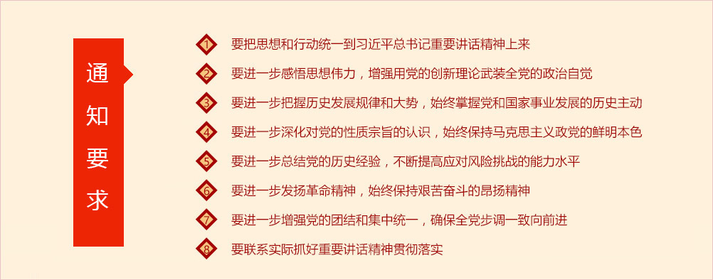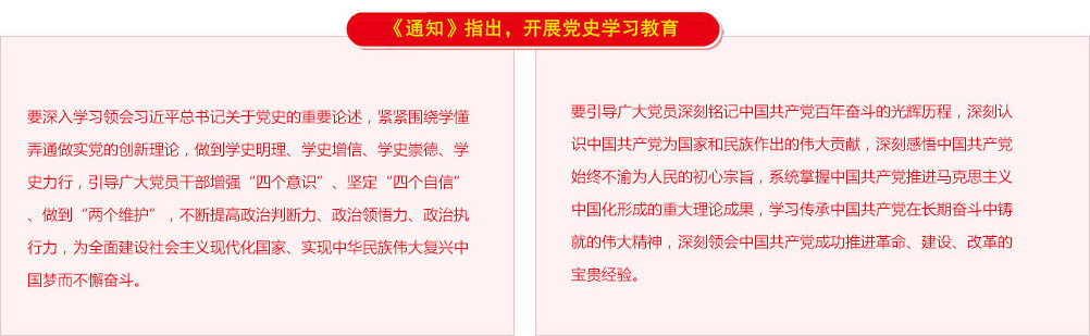 《通知》指出,2021年是中國(guó)共產(chǎn)黨成立100周年。為從黨的百年偉大奮斗歷程中汲取繼續(xù)前進(jìn)的智慧和力量,深入學(xué)習(xí)貫徹習(xí)近平新時(shí)代中國(guó)特色社會(huì)主義思想,鞏固深化“不忘初心、牢記使命”主題教育成果,激勵(lì)全黨全國(guó)各族人民滿(mǎn)懷信心邁進(jìn)全面建設(shè)社會(huì)主義現(xiàn)代化國(guó)家新征程,黨中央決定,在全黨開(kāi)展黨史學(xué)習(xí)教育。【詳細(xì)】